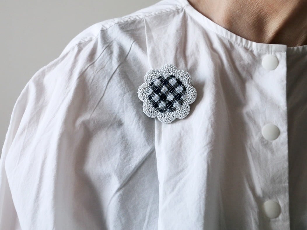 いくつになっても胸がときめくギンガムチェック。かわいい柄をそのままに生地にビーズをまとわせているのでお洋服はもちろん、小物類へのアクセントにも是非です。