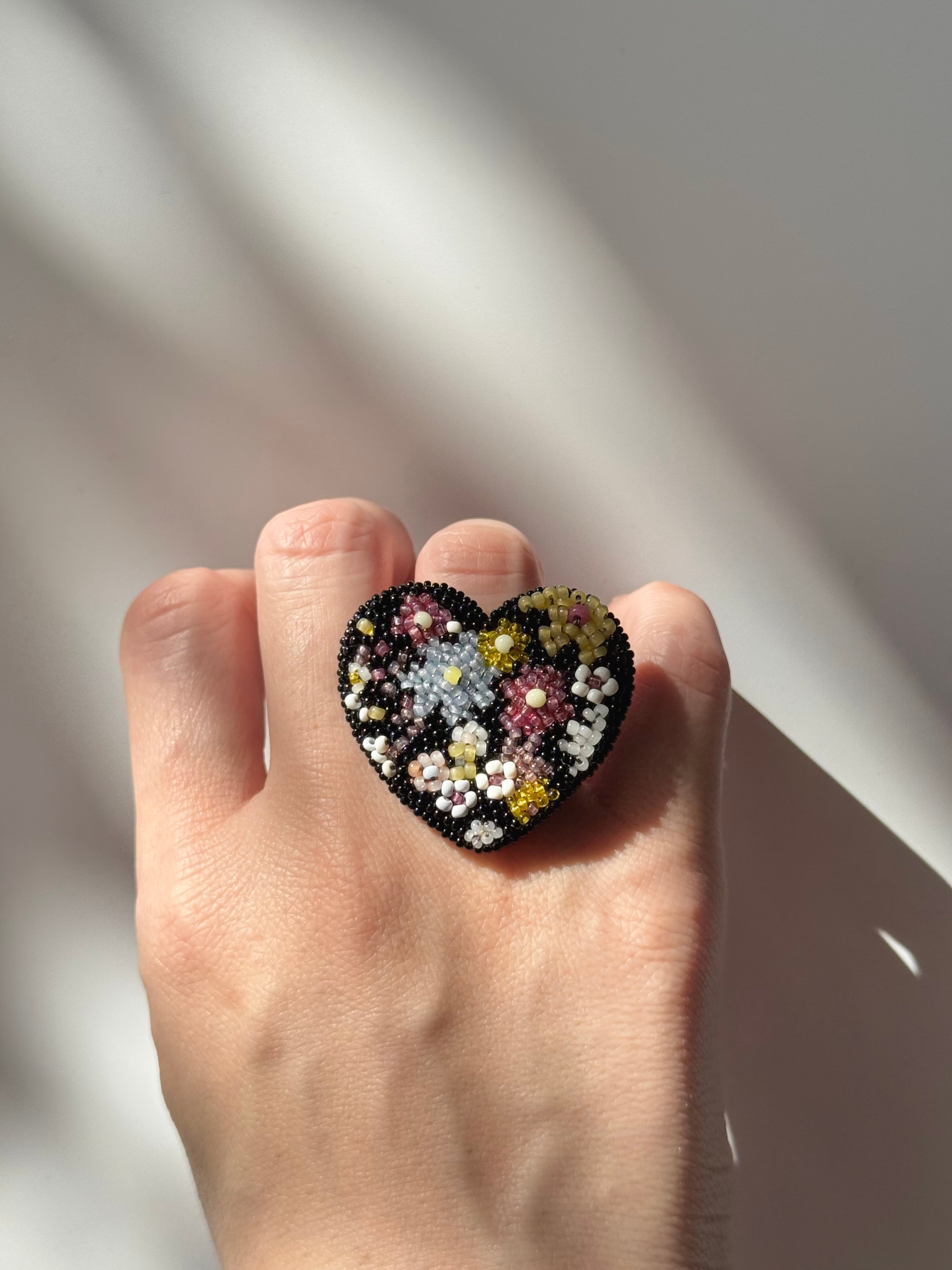 liberty ring heart A/ビーズ刺繍リング