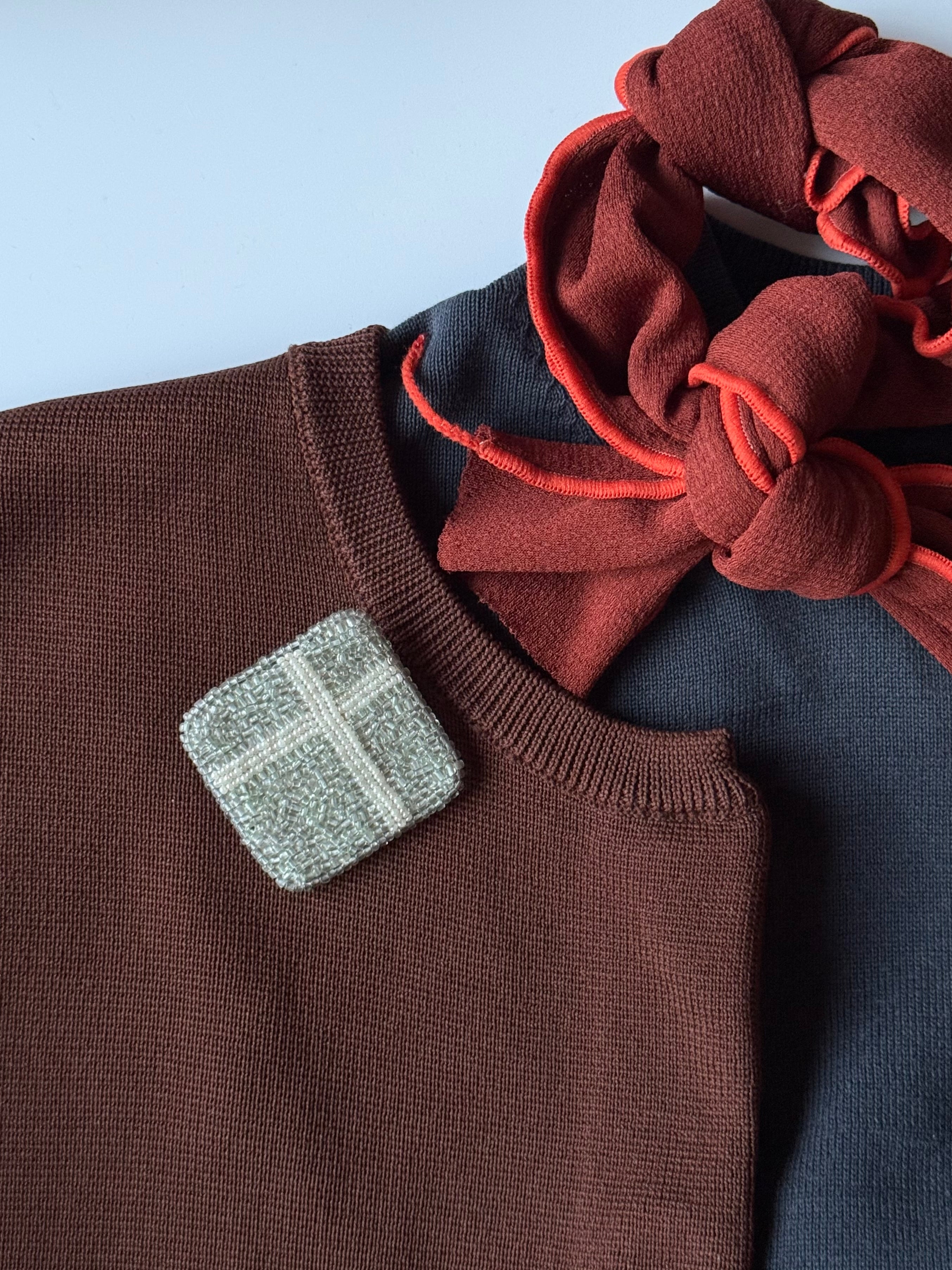 内側にパールカラーのクロスをしのばせるのことでクラシカルな雰囲気を纏った装身具に仕上がりました。